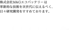 株式会社M&Gエコバッテリーは革新的な技術を次世代に伝えるべく、日々研究開発をすすめております。